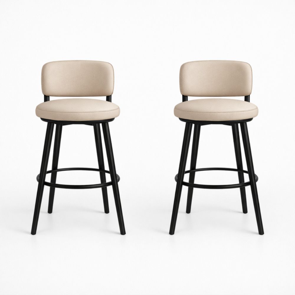 Set of 2 Beige Swivel Bar Stools with Steel Frame and Footrest