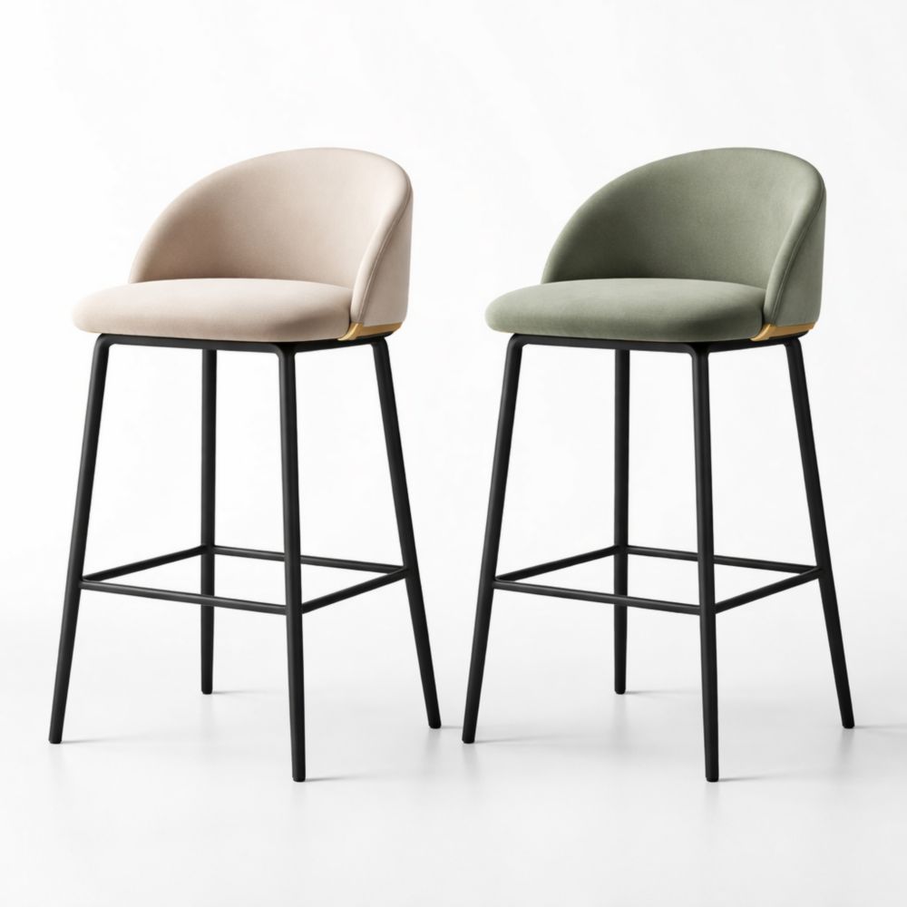 Set of 2 Modern Upholstered Bar Stools with Steel Legs Beige/Green